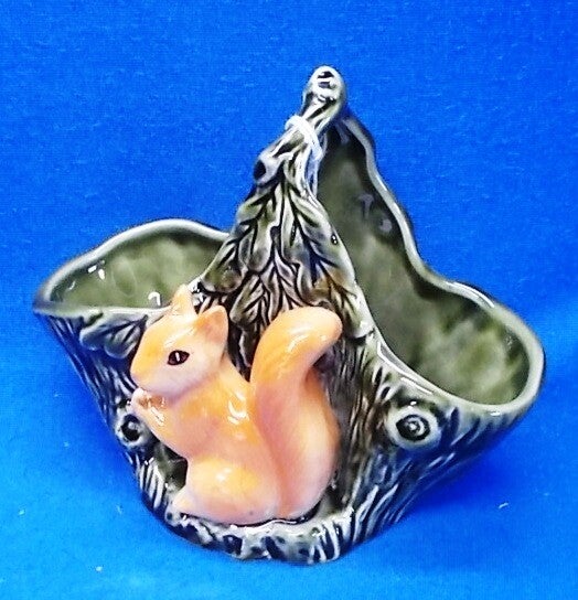 Sylvac, fabrikant van apart aardewerk, vaak voorzien van dier figuren. Dit is een mooi mandje met een eekhoorn als decoratie, 12 cm hoog.