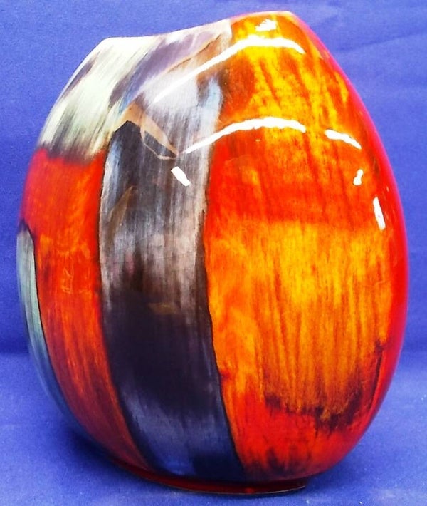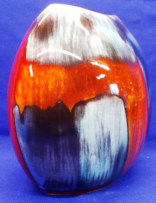 Schitterende volledig met de hand beschiderde vaas van het exclusieve merk 'Poole'. De kleuren zijn fantastisch!