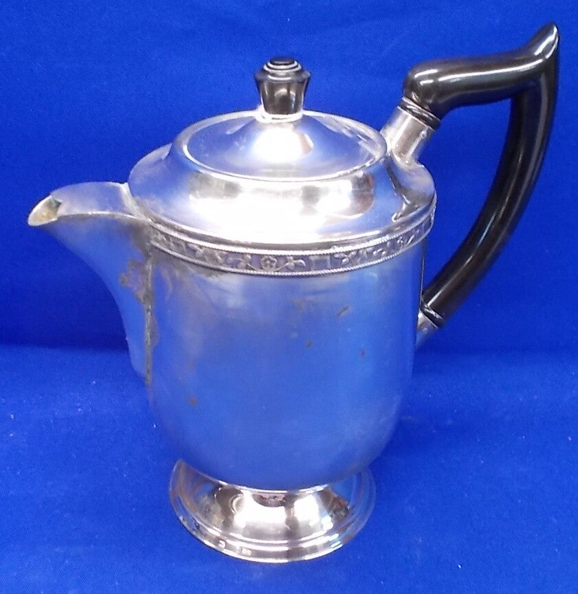 Fraaie verzilverde koffie/heetwaterpot in duideljk gebruikte staat, met gebruikssporen