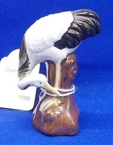 een ooievaar uitgevoerd in porselein.