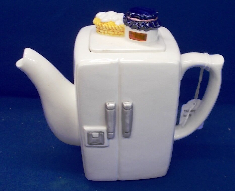 Prachtige theepot van een dubbeldeurs koelkast een prachtig cadeau voor iemand.
